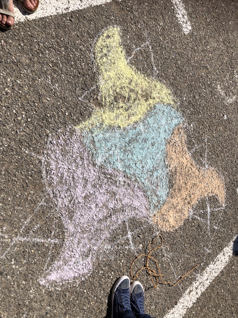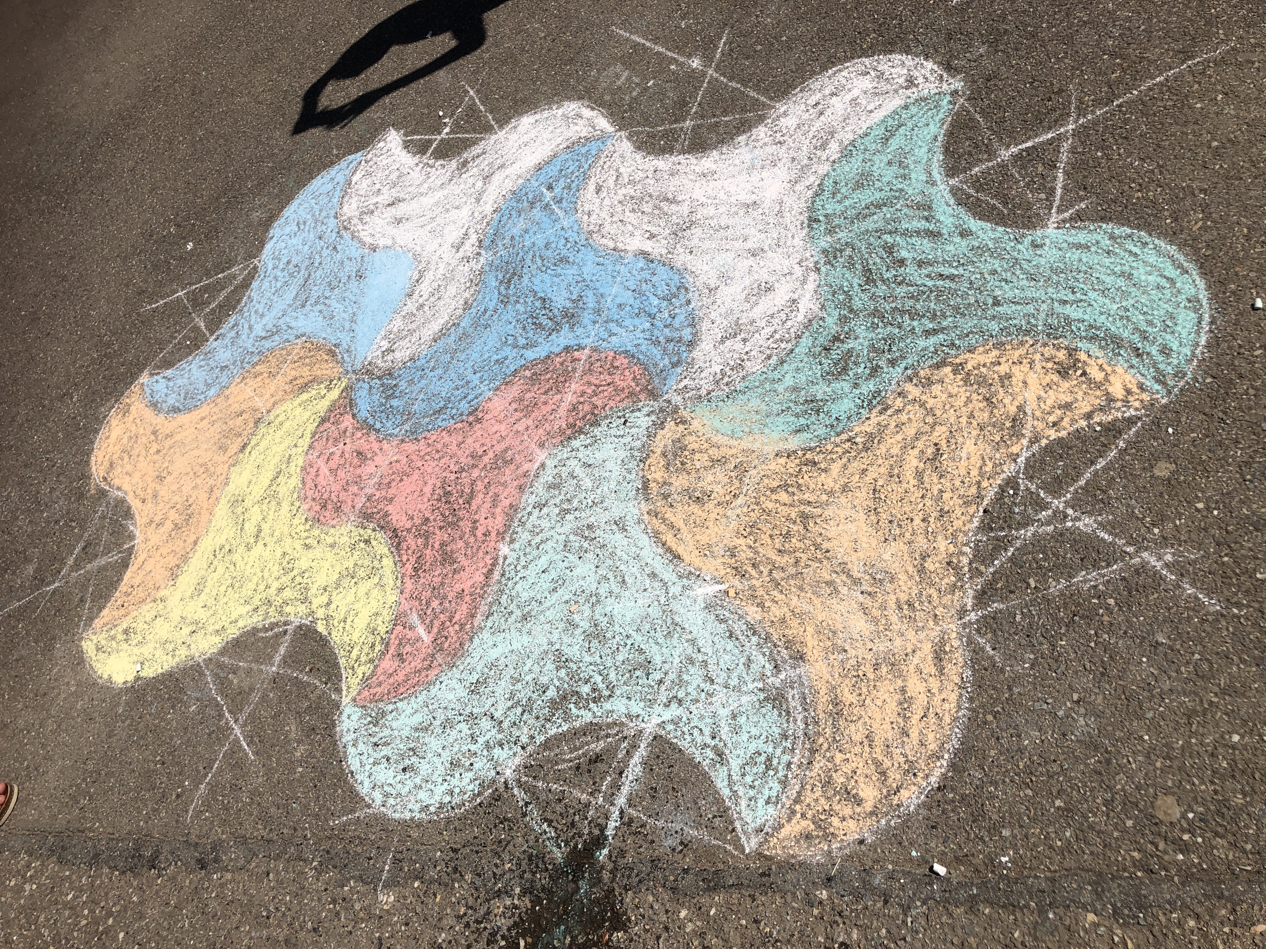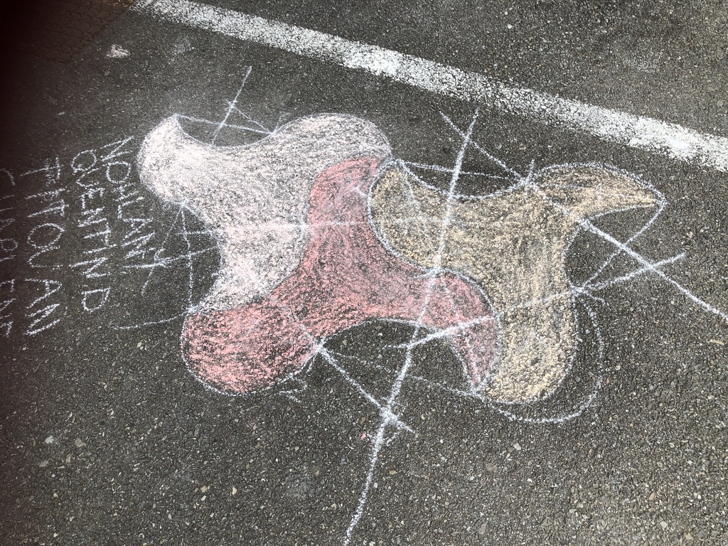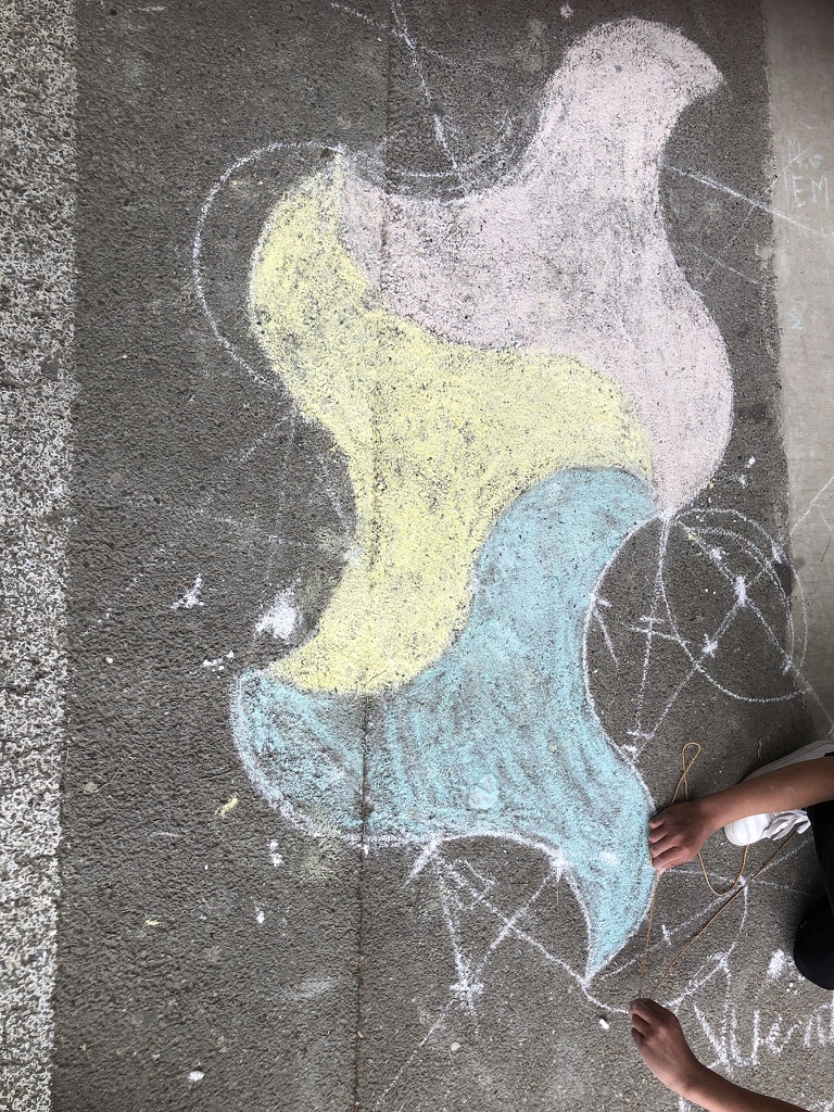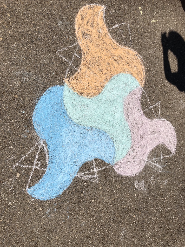 Il y a eu deux temps de construction : une première réalisation dans la salle de classe sûre de la nappe pour découvrir le tracé puis dans la cour où ils ont pu faire ces splendides réalisations :